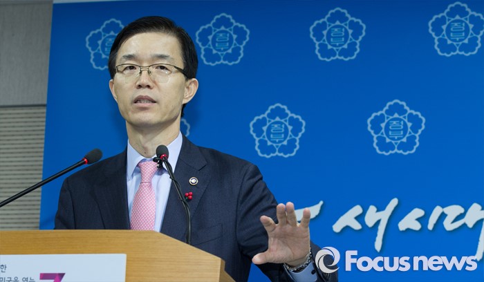 (세종=포커스뉴스) 방문규 보건복지부 차관이 19일 오전 세종시 정부세종청사 교육부 공용브리핑룸에서 국민행복분야 정부합동 업무보고 사전브리핑을 마치고 취잰 질문에 답변하고 있다.