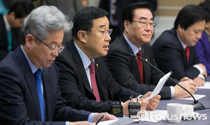 (서울=포커스뉴스) 20일 오전 서울 여의도 국회 귀빈식당에서 열린 테러 위기상황 대처를 위한 합동 당정협의에 참석한 김정훈 새누리당 정책위의장이 모두발언을 하고 있다.