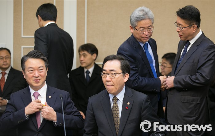 (서울=포커스뉴스) 20일 오전 서울 여의도 국회 귀빈식당에서 열린 테러 위기상황 대처를 위한 합동 당정협의에 참석한 이철우(오른쪽 두번째) 새누리당 정보정조위원장과 김수민(오른쪽 첫번째) 국가정보원 2차장이 대화하고 있다. 왼쪽 첫번째는 강신명 경찰청장, 왼쪽 두번째는 조태열 외교부 2차관.