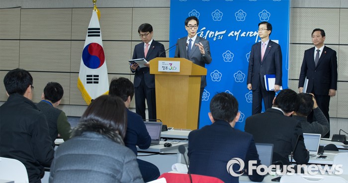 (세종=포커스뉴스) 이준식 사회부총리 겸 교육부장관이 19일 오전 세종시 정부세종청사 교육부 공용브리핑룸에서 국민행복분야 정부합동 업무보고 사전브리핑을 하고 있다. 왼쪽부터 고영선 고용노동부 차관, 이 부총리, 방문규 보건복지부 차관, 권용현 여성가족부 차관.