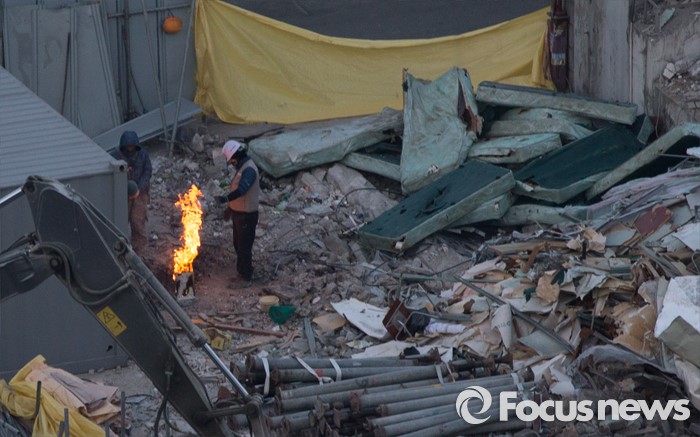 | △ 모닥불로 추위 녹이는 인부들 |