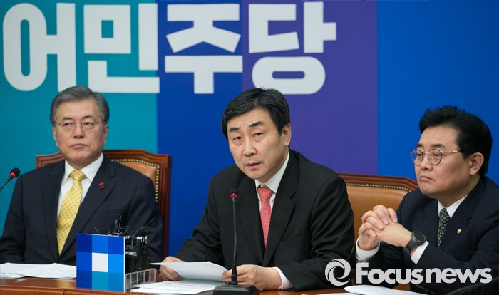(서울=포커스뉴스) 이종걸(가운데) 더불어민주당 원내대표가 20일 오전 서울 여의도 국회에서 열린 최고위원회의에 참석해 발언하고 있다.