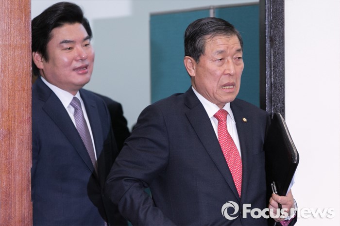 (서울=포커스뉴스) 원유철(왼쪽) 새누리당 원내대표와 황진하 사무총장이 20일 오전 서울 여의도 국회에서 열린 최고중진연석회의에 참석하고 있다.