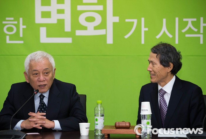 (서울=포커스뉴스) 국민의당 한상진 창단준비위원장과 김한길 상임부위원장이 20일 박근혜 대통령의 '서명운동 참여'를 강력하게 비판했다.