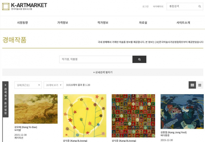 문화체육관광부는 미술품 거래정보, 미술시장 분석자료 등을 제공하는 '한국 미술시장 정보시스템'을 예술경영지원센터(이하 예경)·한국미술시가감정협회(이하 시감)와 함께 구축했다고 밝혔다.