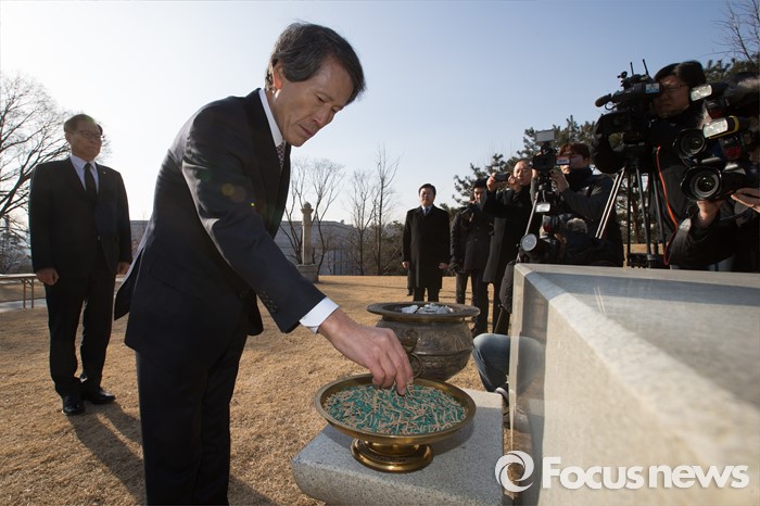 (서울=포커스뉴스) 한상진 국민의당 창당준비위원장이 20일 오전 서울 용산구 백범 김구 선생 묘역을 찾아 참배하고 있다.