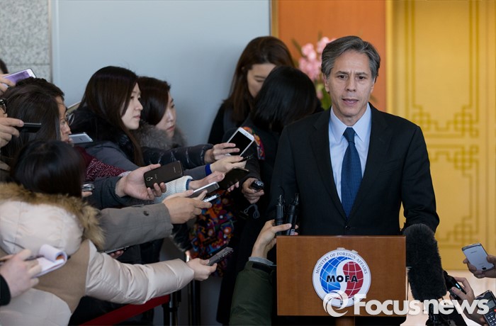 (서울=포커스뉴스) 토니 블링큰 미 국무부 부장관이 20일 오후 서울 종로구 외교부에서 북한의 4차 핵실험에 대한 한미간 대응방안을 집중 논의하고 결과를 브리핑하고 있다.