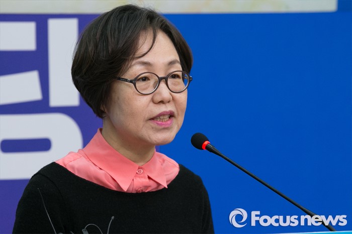 (서울=포커스뉴스) 권미혁 한국여성단체연합 전 대표가 20일 오전 서울 여의도 국회 더불어민주당 대표실에서 열린 입당 기자회견에 참석해 인사말을 하고 있다.