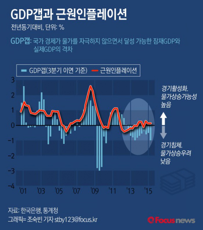 (서울=포커스뉴스) 20일 한국은행이 발간한 ‘BOK 이슈노트’에 따르면 지난 2012년 1분기 이후 경기와 근원인플레이션 간의 괴리가 발생했고 그 폭이 커진 것으로 분석됐다.