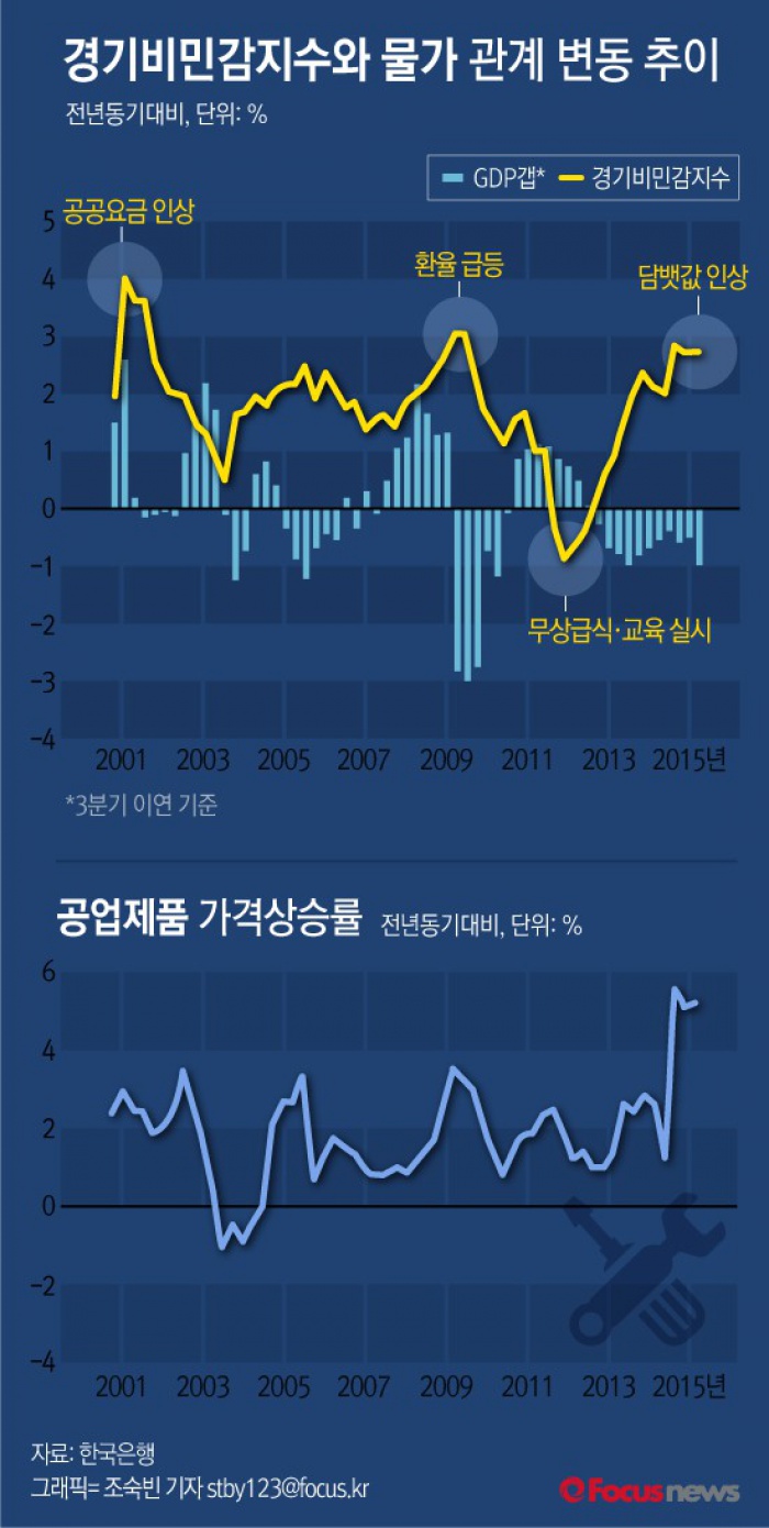 | △ [그래픽] 경기와 물가 괴리 심화(2) |