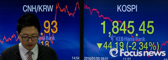 (서울=포커스뉴스) 코스피 지수가 외국인과 기관의 매도 공세에 전 거래일보다 44.19포인트(2.34%) 하락한 1,845.45에 거래를 마친 20일 오후 서울 중구 KEB하나은행 딜링룸에서 한 딜러가 업무를 보고 있다. 이날 원달러 환율은 전 거래일보다 8.1원 오른 1214원에 거래를 마감했다.