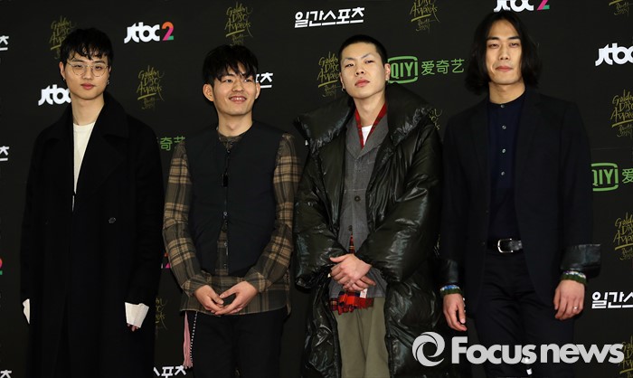 (서울=포커스뉴스) 20일 서울 동대문구 경희대학교 평화의 전당에서 열린 제 30회 골든디스크 시상식에 참석한 밴드 혁오가 포토타임을 갖고 있다.
