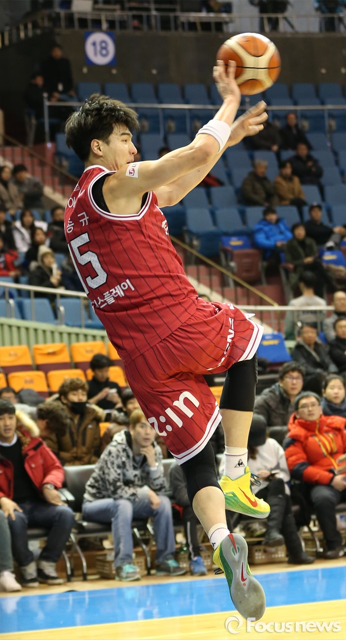 (서울=포커스뉴스) 20일 서울 잠실실내체육관에서 열린 2015-2016 프로농구 삼성-LG 경기에서 LG 김종규가 라인 밖으로 튀어나가는 볼을 잡아 패스하고 있다.