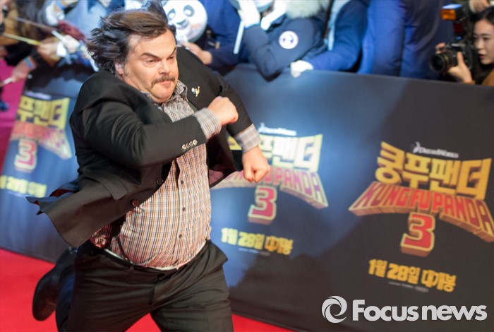 (서울=포커스뉴스) 할리우드 애니메이션 '쿵푸팬더 3' 홍보차 내한한 배우 잭 블랙이 20일 오후 서울 영등포구 타임스퀘어에서 열린 레드카펫 행사에 참석해 팬들을 향해 달려가고 있다.