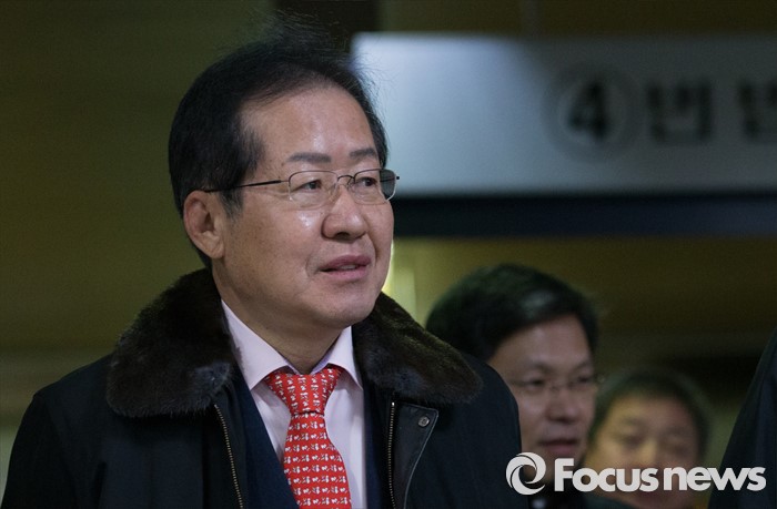 (서울=포커스뉴스) 고 성완종 전 경남기업 회장에게서 불법정치자금 1억원을 받은 혐의로 기소된 홍준표 경남지사가 21일 오전 첫 공판에 출석하기 위해 서울중앙지방법원으로 들어서고 있다.