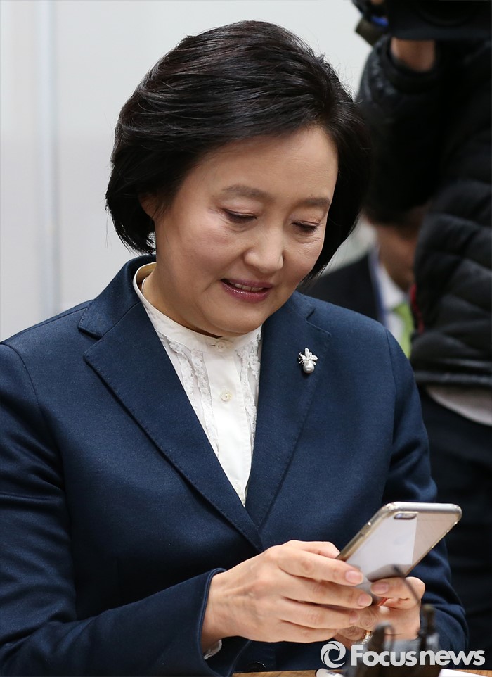 | △ 김종인 위원장과 주고받은 문자메시지 보는 박영선 |
