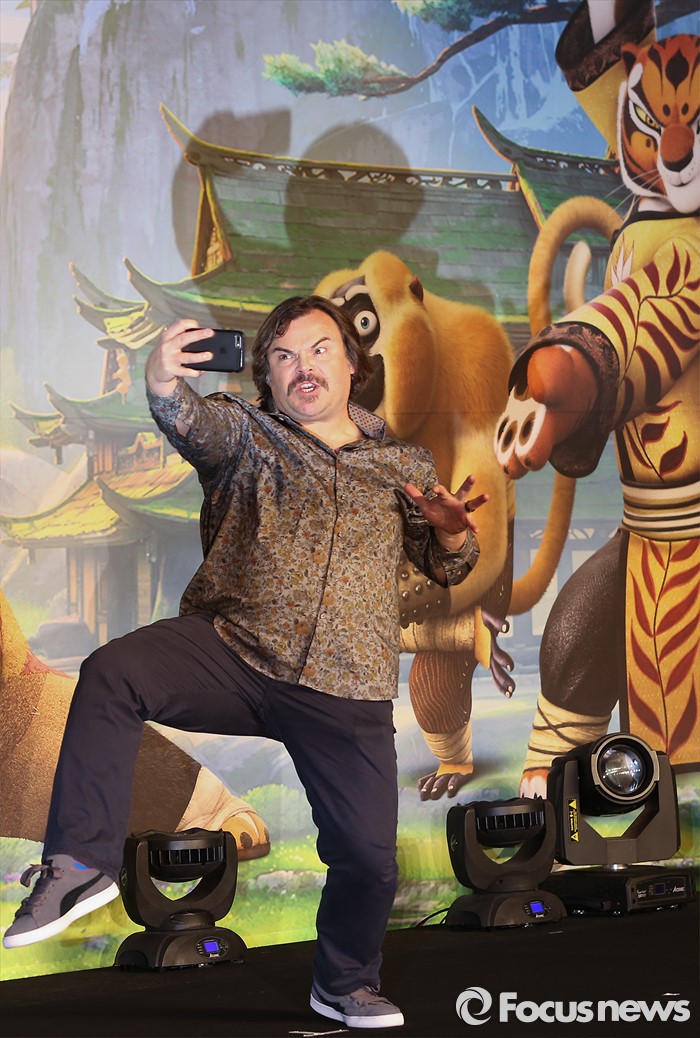 (서울=포커스뉴스) 21일 오전 서울 영등포구 콘래드 서울호텔에서 열린 쿵푸팬더3 기자간담회에 참석한 배우 잭 블랙이 포토타임을 갖고 있다.