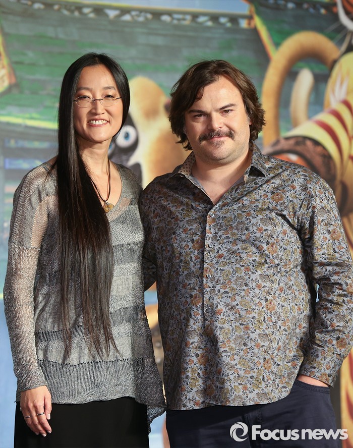 (서울=포커스뉴스) 21일 오전 서울 영등포구 콘래드 서울호텔에서 열린 쿵푸팬더3 기자간담회에 참석한 여인영(왼쪽) 감독과 배우 잭 블랙이 포토타임을 갖고 있다.