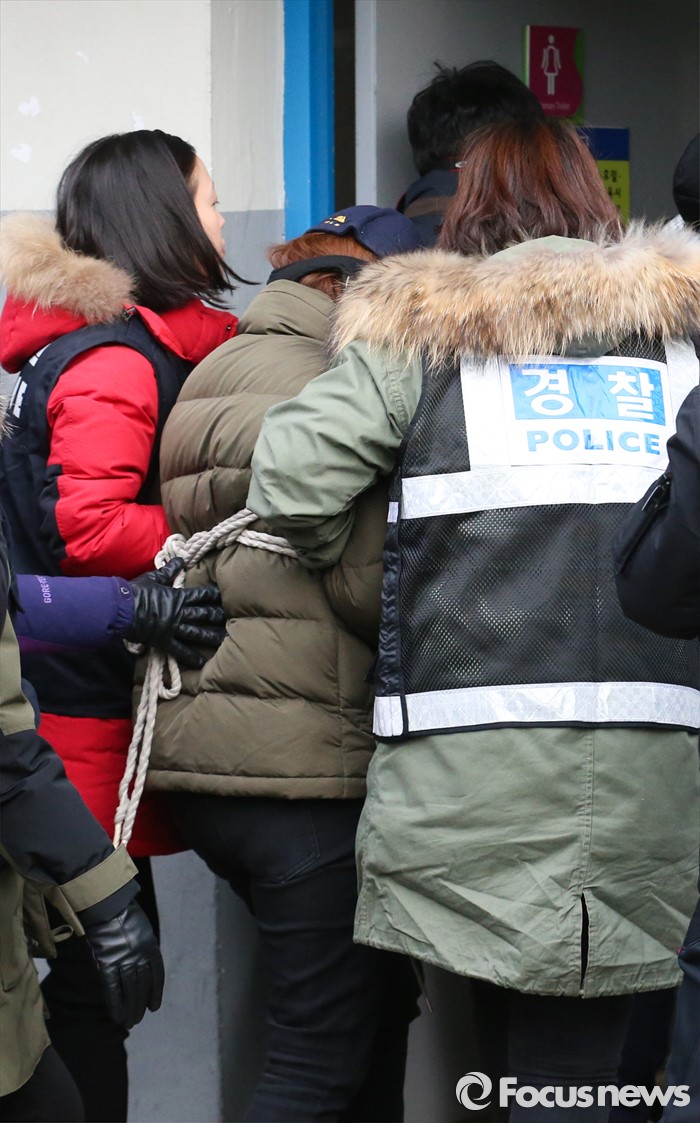 (부천=포커스뉴스) 부천 초등생 살해사건의 1차 현장검증이 실시된 21일 오전 부천 원미구 시민회관 화장실에 피의자 한 모(33)씨가 범행 상황을 재연하기 위해 들어서고 있다.