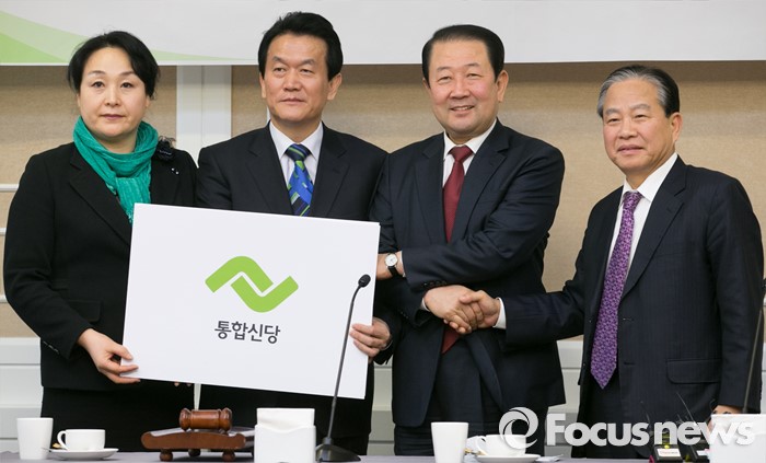 (서울=포커스뉴스) 21일 오전 서울 여의도 국회 귀빈식당에서 박주선(오른쪽 두번째) 통합신당 창당준비위원장이 운영위원회의를 열고 당 로고 및 인선발표 후 주요 당직자들과 포즈를 취하고 있다.