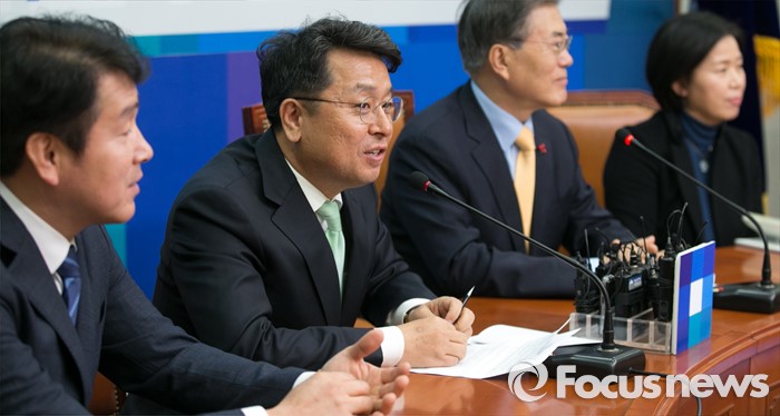 (서울=포커스뉴스) 21일 오전 서울 여의도 국회에서 열린 더불어민주당 뉴파티특별위원회 출범 회의에 참석한 이철희 두문정치전략연구소장이 인사말을 하고 있다.