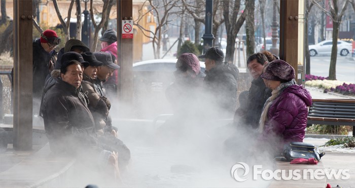 (대전=포커스뉴스) 절기상 대한인 21일 오전 대전 유성구 족욕체험장에서 영하의 강추위에도 불구하고 시민들이 온천수에 발을 담그고 몸을 녹이고 있다.