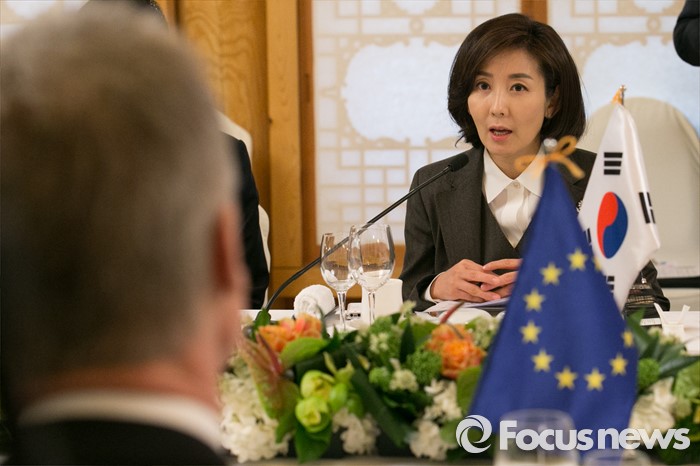 (서울=포커스뉴스) 나경원 외교통일위원회 위원장이 21일 오후 서울 여의도 국회 사랑재에서 북한의 제4차 핵실험 후속 대책 논의를 위한 주한유럽연합(EU) 회원국 대사 초청 오찬간담회에 참석해 모두발언하고 있다.