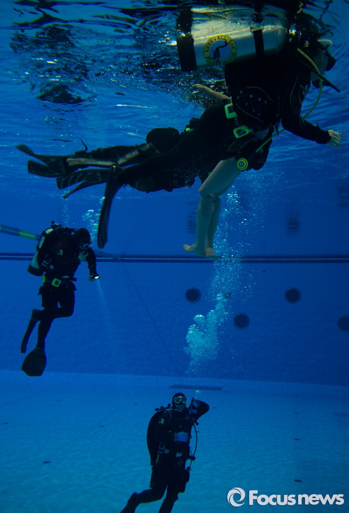 (대전=포커스뉴스) 21일 오후 대전 동구 용운국제수영장에서 충북 영동소방서 구조대원들이 동계 수난사고 인명구조훈련을 실시하고 있다.