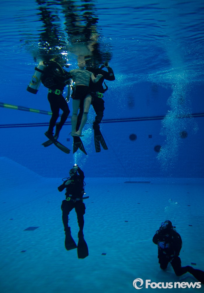 (대전=포커스뉴스) 21일 오후 대전 동구 용운국제수영장에서 충북 영동소방서 구조대원들이 동계 수난사고 인명구조훈련을 실시하고 있다.