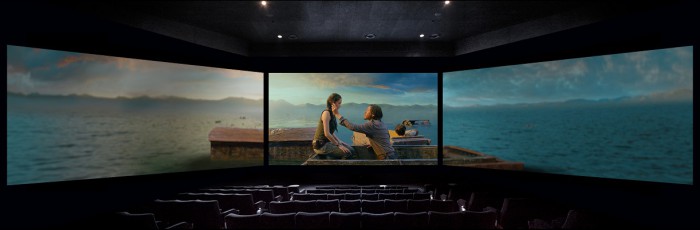 CGV 안구철 스크린X 담당은 "전세계적으로 기존 극장에 새로운 기술이 접목된 특별관은 하나의 트렌드가 됐다. 올해 스크린X 상영관 확대와 콘텐츠 개발에 적극 투자해 글로벌 영화 시장에 새 바람을 불러일으킬 것이다"라고 밝혔다.CGV와 한국과학기술원(KAIST)이 세계 최초 공동 개발한 다면영상시스템 '스크린X'로 구현된 영화 '모진: 더 로스트 레전드' 상영 모습. <사진제공=CGV>