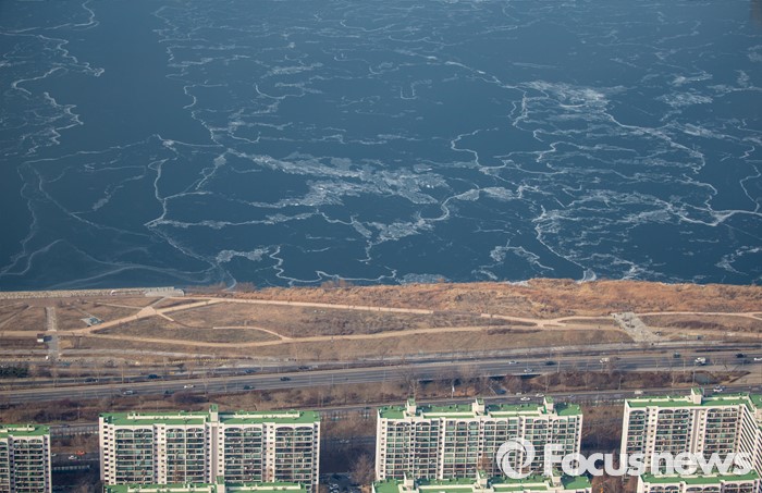 (서울=포커스뉴스) 서울 기온이 영하권에 머무르며 연일 강추위가 이어지고 있는 21일 오후 서울 한강이 얼어 있다.