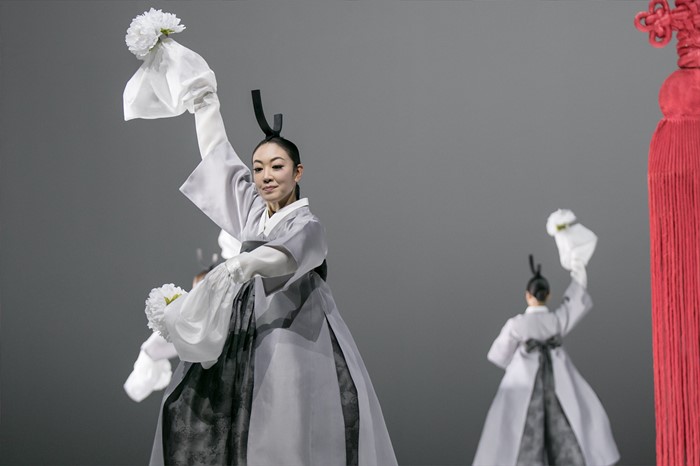 (서울=포커스뉴스) 20일 중국 베이징 21세기극장에서 열린 2016년 한국관광의 해 개막행사에서 정구호 감독이 한국의 전통 춤을 현대적 감각으로 재창조한 국립무용단의 ‘향연(饗宴)’ 공연이 펼쳐지고 있다. <사진제공=문화체육관광부>