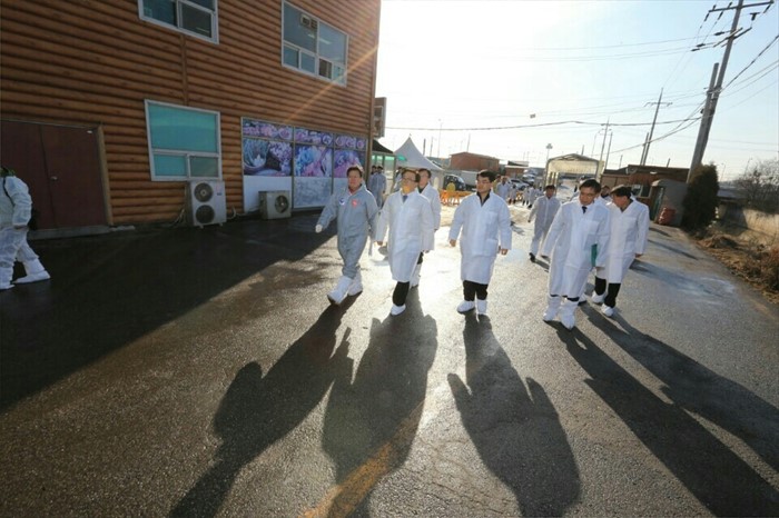 (평택=포커스뉴스) 이동필 농림축산식품부장관이 21일 오후 경기도 평택 평농푸드도축장을 방문해 구제역 방역실태를 점검하고 있다. <사진제공=농림축산식품부>