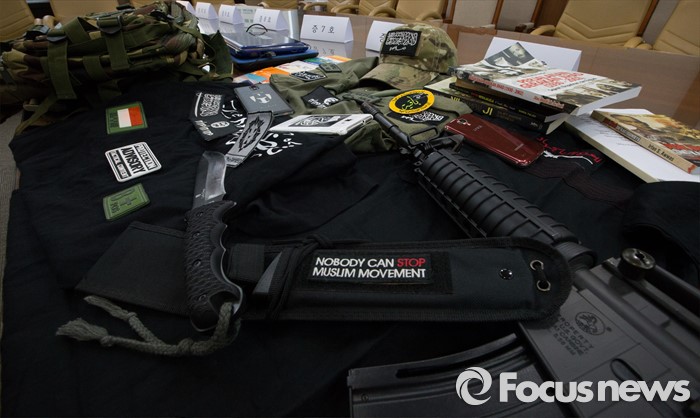 뿐만 아니라 북한산에서 알누스라의 깃발을 들거나 경복궁에서 단체의 상징이 새겨진 모자를 쓰고 사진을 찍기도 했다.경찰이 지난해 11월 18일 오후 서울 서대문구 경찰청에서 IS 연계 국제테러단체 '알누스라'를 추종한 혐의로 국내에 불법체류 중인 인도네시아인을 검거하고 주거지에서 발견된 보위 나이프, M4A1 카빈 모형소총, 이슬람 윈리주의 서적을 비롯한 다수의 증거물들을 공개하고 있다. 조종원 기자
