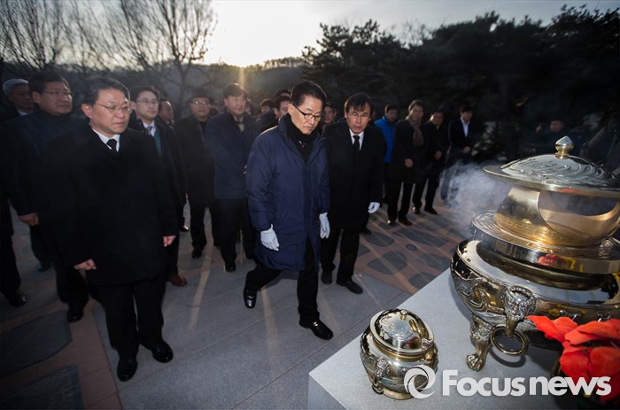 | △ 탈당 앞두고 참배하는 박지원 |