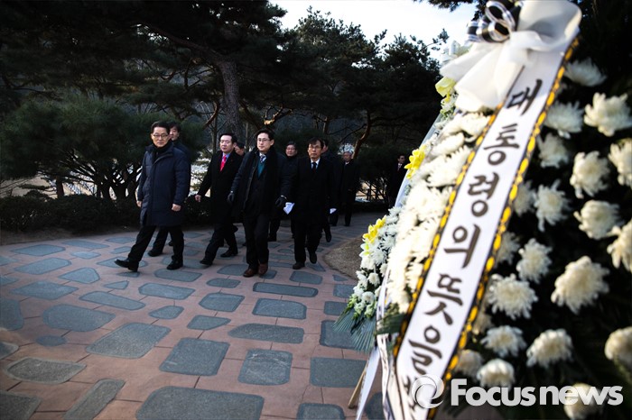 | △ 탈당 앞둔 박지원, 김대중 전 대통령 묘역 방문 |