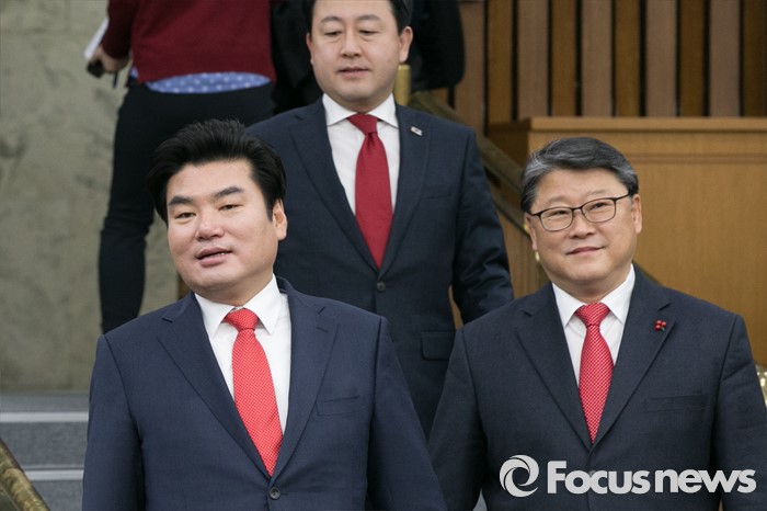 | △ 회의 참석하는 원유철·조원진 |