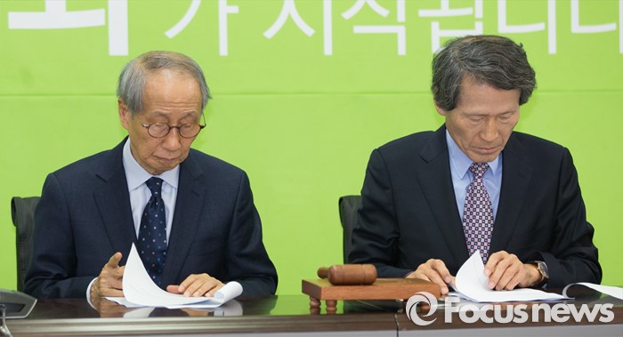 (서울=포커스뉴스) 국민의당(가칭) 창당준비위원회 위원장직을 수락한 후 2주 만에 모습을 드러낸 윤여준 전 장관이 20일 오전 서울 마포구 국민의당(가칭) 당사에서 열린 기획조정회의에 참석하고 있다.