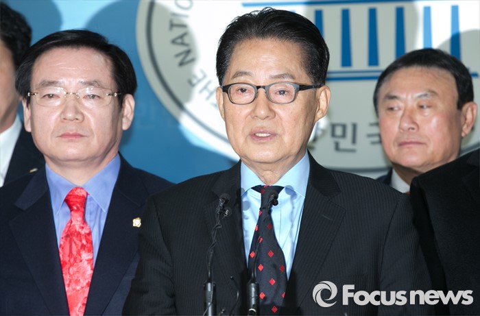 (서울=포커스뉴스) 박지원 더불어민주당 의원이 22일 오전 서울 여의도 국회 정론관에서 탈당 기자회견을 하고 있다.