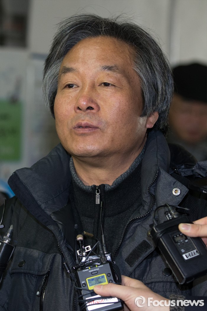 (서울=포커스뉴스) 박래군 4·16연대 상임운영위원이 22일 오전 서울 서초구 서울중앙지방법원에서 열린 선고 공판을 마친 뒤 취재진의 질문에 답하고 있다.