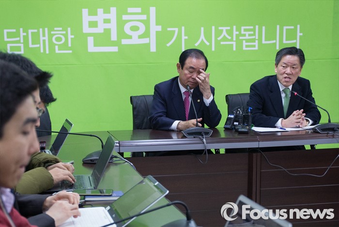 (서울=포커스뉴스)장병완 국민의당(가칭) 창당준비위원회 정책위원장과 주승용 원내대표(오른쪽)가 22일 오전 서울 마포구 국민의당 당사에서 기자간담회을 하고 있다.
