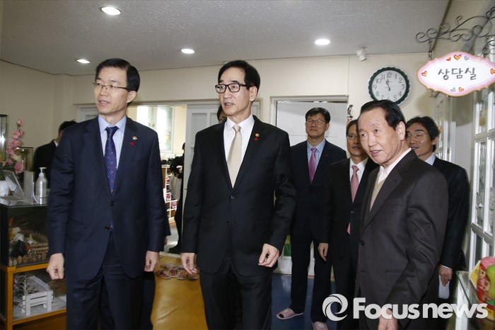 (서울=포커스뉴스) 이준식 사회부총리 겸 교육부장관이 22일 오전 서울 용산구 일민유치원을 찾아 학부모, 보육 관계자 등과 간담회를 열기 전 보육현장을 둘러보고 있다.