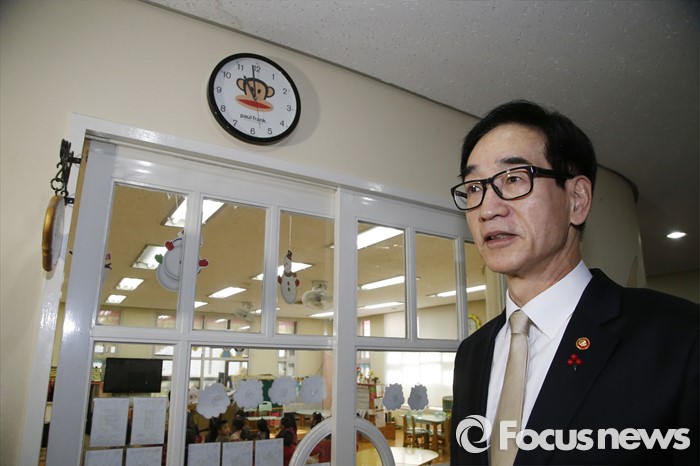 (서울=포커스뉴스) 이준식 사회부총리 겸 교육부장관이 22일 오전 서울 용산구 일민유치원을 찾아 학부모, 보육 관계자 등과 간담회를 열기 전 보육현장을 둘러보고 있다.