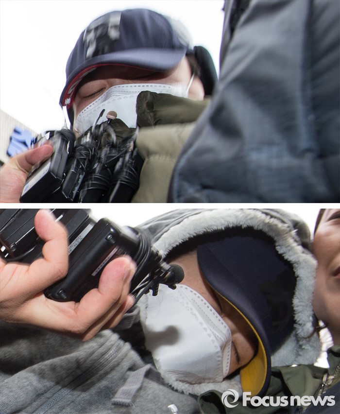 (부천=포커스뉴스) 부천 초등생 토막사건의 피의자 최모 씨(위쪽)와 한모 씨가 사체손괴·유기와 아동보호법 위반 혐의로 22일 오후 경기 부천시 원미경찰서에서 검찰로 송치되고 있다.