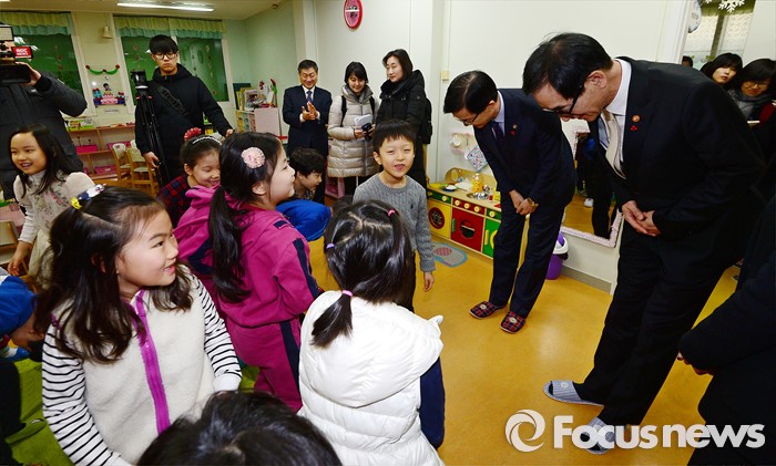 (서울=포커스뉴스) 이준식 사회부총리 겸 교육부장관이 22일 오전 서울 용산구 일민유치원을 찾아 학부모, 보육 관계자 등과 간담회를 열기 전 수업 참관을 마치고 어린이들에게 인사를 하고 있다.