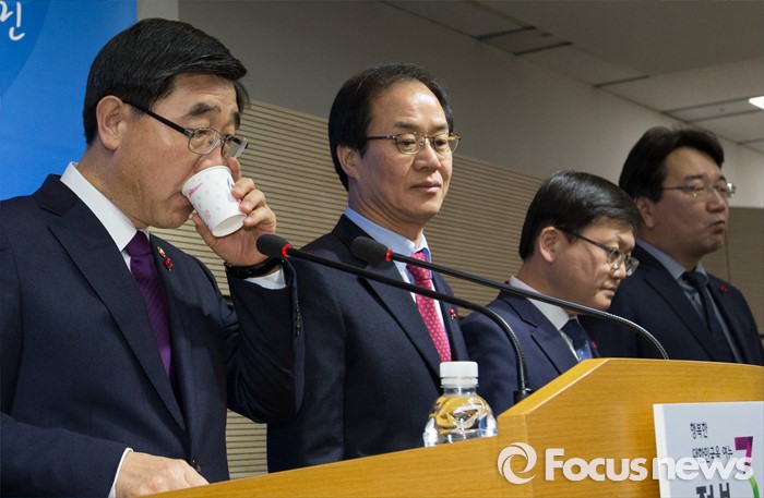 (세종=포커스뉴스) 이기권 고용노동부장관이 22일 오후 세종시 정부세종청사 보건복지부 브리핑룸에서 '일반 해고' 및 '취업규칙 변경요건 완화' 등 양대 지침에 대한 최종안 발표를 앞두고 목을 축이고 있다.