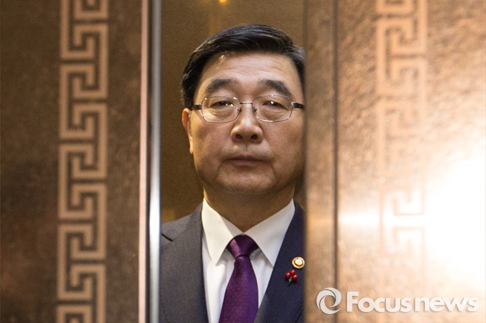 (세종=포커스뉴스) 이기권 고용노동부장관이 22일 오후 세종시 정부세종청사 보건복지부 브리핑룸에서 '일반 해고' 및 '취업규칙 변경요건 완화' 등 양대 지침에 대한 최종안 발표를 마치고 엘리베이터로 이동하고 있다.