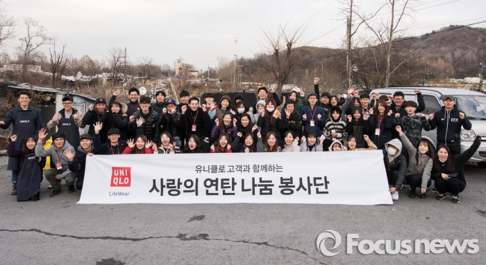 (서울=포커스뉴스) SPA 브랜드 유니클로(UNIQLO)는 22일부터 이웃에게 연탄을 전달하는 ‘고객과 함께하는 사랑의 나눔 봉사단’ 150명의 2차 모집을 시작한다.