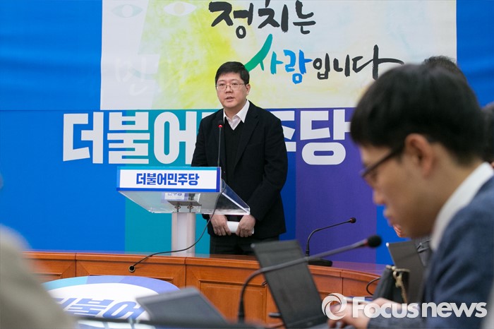 (서울=포커스뉴스) 김대중 전 대통령의 삼남 김홍걸 연세대 김대중 도서관 객원교수가 24일 오전 서울 여의도 국회 더불어민주당 당대표실에서 입당 기자회견을 하고 있다.