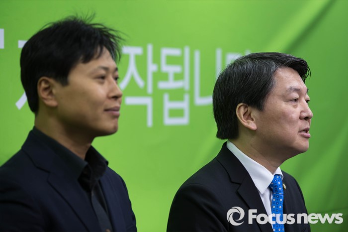 (서울=포커스뉴스) 24일 오전 서울 마포구 국민의당 당사에서 안철수(오른쪽) 인재영입위원장이 곽선우 변호사의 국민의당 합류를 발표하고 있다.